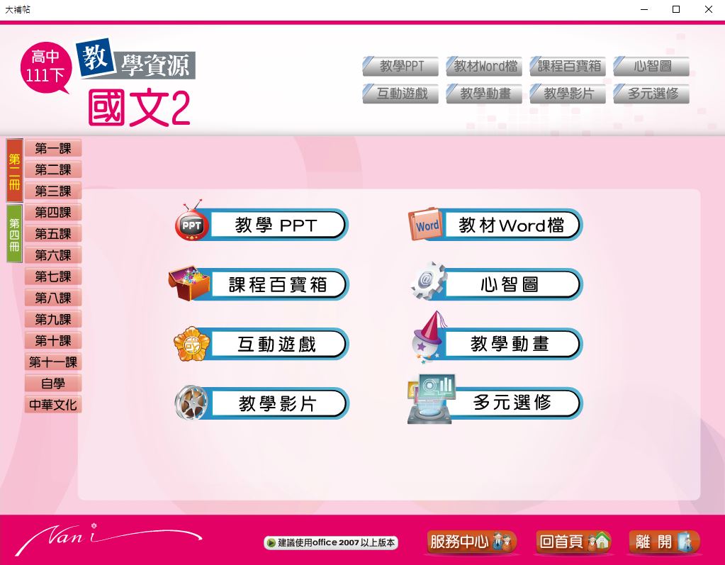 111學年下學期 高中大補帖 南一版 國文科(二、四) 教學光碟