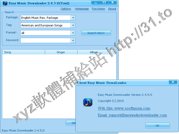 • SooftMoon Easy Music Downloader v2.5.8.3 英文正式版(可以通過網路搜集全世界的音樂並下載到個人電腦上的軟體)